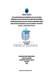 ELVIANTI, ICA (2026) ANALISIS KERUSAKAN PERMUKAAN JALAN PADA PERKERASAN LENTUR DENGAN METODE PAVEMENT CONDITION INDEX (PCI) DAN SURFACE DISTRESS INDEX (SDI) (STUDI KASUS RUAS JALAN NASIONAL TANJUNG SELOR - BATAS BULUNGAN). S1 thesis, Universitas Mercu Buana Jakarta.