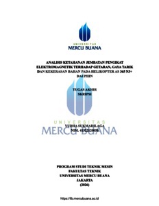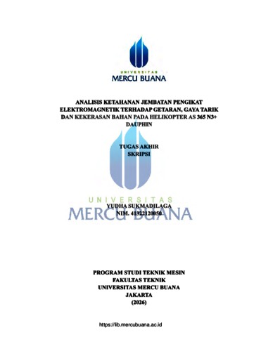 SUKMADILAGA, YUDHA (2026) ANALISIS KETAHANAN JEMBATAN PENGIKAT ELEKTROMAGNETIK TERHADAP GETARAN, GAYA TARIK DAN KEKERASAN BAHAN PADA HELIKOPTER AS 365 N3+ DAUPHIN. S1 thesis, Universitas Mercu Buana Jakarta.