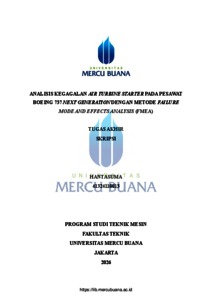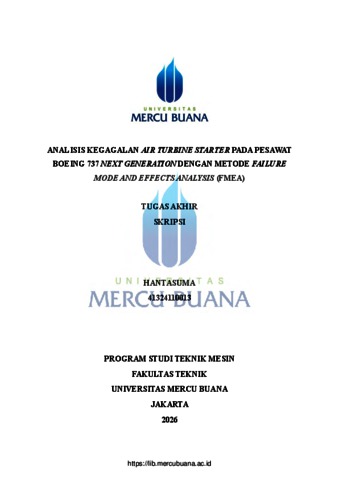 HANTASUMA, HANTASUMA (2026) ANALISIS KEGAGALAN AIR TURBINE STARTER PADA PESAWAT BOEING 737 NEXT GENERATION DENGAN METODE FAILURE MODE AND EFFECTS ANALYSIS (FMEA). S1 thesis, Universitas Mercu Buana Jakarta.