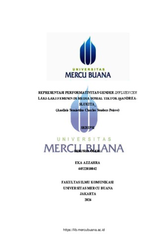 AZZAHRA, EKA (2026) REPRESENTASI PERFORMATIVITAS GENDER INFLUENCER LAKI-LAKI FEMININ DI MEDIA SOSIAL TIKTOK @ANDREA-SLUKITA_ (Analisis Semiotika Charles Senders Peirce). S1 thesis, Universitas Mercu Buana Jakarta.