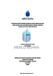 LASE, ASAELI TONGONI (2026) OPTIMASI SUHU PROSES INJEKSI UNTUK MENGURANGI SINK MARK PADA SPAKBOR DEPAN SEPEDA MOTOR MENGGUNAKAN METODE RSM. S2 thesis, Universitas Mercu Buana Jakarta.