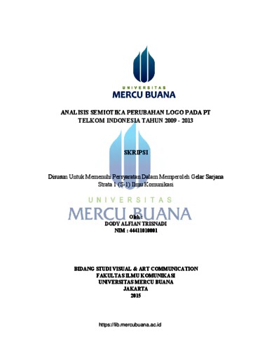 Trisnadi, Dody Alfian (2015) ANALISIS SEMIOTIKA PERUBAHAN LOGO PADA PT TELKOM INDONESIA TAHUN 2009 - 2013. S1 thesis, Universitas Mercu Buana.