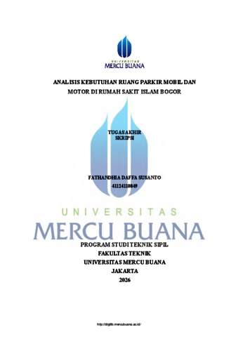 SUSANTO, FATHANDHIA DAFFA (2026) ANALISIS KEBUTUHAN RUANG PARKIR MOBIL DAN MOTOR DI RUMAH SAKIT ISLAM BOGOR. S1 thesis, UNIVERISTAS MERCU BUANA - BUNCIT.