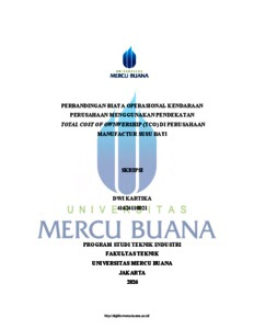 Uncontrolled Keywords: Total Cost of Ownwership, efisiensi biaya, kendaraan operasional, perusahaan manufaktur.