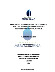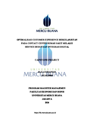 ZURIAWAN, ELZA (2026) OPTIMALISASI CUSTOMER EXPERIENCE BERKELANJUTAN PADA CONTACT CENTER RUMAH SAKIT MELALUI SERVICE DESIGN DAN INTEGRASI DIGITAL. S2 thesis, Universitas Mercu Buana Jakarta.