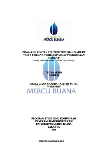 Putri, Keiza Irana Candra Tabitha (2026) PENGARUH KONTEN YOUTUBE TUTORIAL MAKE UP TASYA FARASYA TERHADAP MINAT PENGGUNAAN MAKE UP (Survey Pada Subscribers YouTube Tasya Farasya). S1 thesis, Universitas Mercu Buana Jakarta.