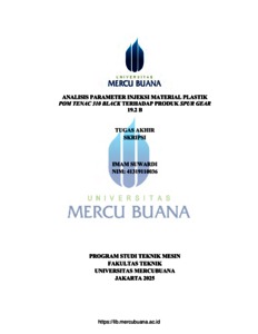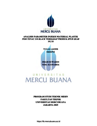 SUWARDI, IMAM (2025) ANALISIS PARAMETER INJEKSI MATERIAL PLASTIK POM TENAC 310 BLACK TERHADAP PRODUK SPUR GEAR 19.2 B. S1 thesis, Universitas Mercu Buana Jakarta.