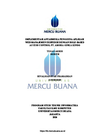PRAMADHAN, RIVALDIANSYAH (2026) IMPLEMENTASI ANTARMUKA PENGGUNA APLIKASI WEB MANAJEMEN EKSPEDISI DENGAN ROLE-BASED ACCESS CONTROL PT. AMORA GINKA KINDO. S1 thesis, Universitas Mercu Buana Jakarta.