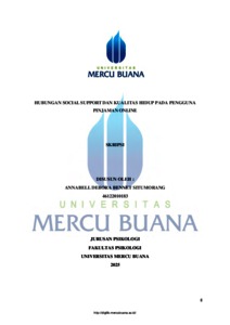 SITUMORANG, ANNABELL DEBORA BENNET (2026) HUBUNGAN SOCIAL SUPPORT DAN KUALITAS HIDUP PADA PENGGUNA PINJAMAN ONLINE. S1 thesis, UNIVERISTAS MERCU BUANA - BUNCIT.