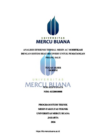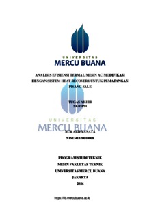 ALIFYANATA, NUR (2026) ANALISIS EFISIENSI TERMAL MESIN AC MODIFIKASI DENGAN SISTEM HEAT RECOVERY UNTUK PEMATANGAN PISANG SALE. S1 thesis, Universitas Mercu Buana Jakarta.