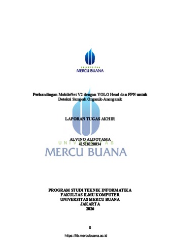 ALDOTAMA, ALVINO (2026) PERBANDINGAN MOBILENET V2 DENGAN YOLO HEAD DAN FPN UNTUK DETEKSI SAMPAH ORGANIK-ANORGANIK. S1 thesis, Universitas Mercu Buana Jakarta.