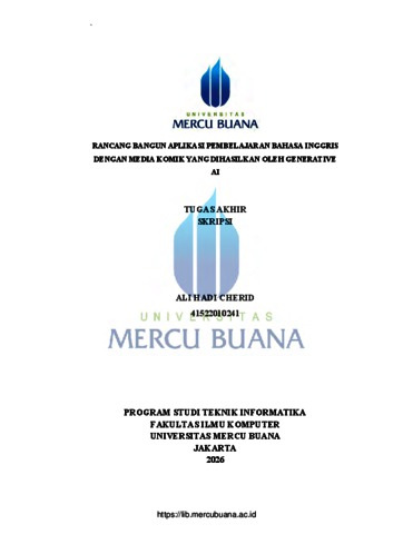 CHERID, ALI HADI (2026) RANCANG BANGUN APLIKASI PEMBELAJARAN BAHASA INGGRIS DENGAN MEDIA KOMIK YANG DIHASILKAN OLEH GENERATIVE AI. S1 thesis, Universitas Mercu Buana Jakarta.