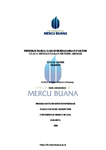ARITONANG, RAKHAN FAHREZI (2026) PREDIKSI HARGA GABAH BERDASARKAN FAKTOR CUACA MENGGUNAKAN METODE ARIMAX. S1 thesis, Universitas Mercu Buana Jakarta.