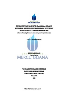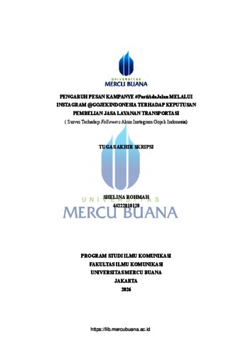 ROHMAH, SHELINA (2026) PENGARUH PESAN KAMPANYE #PastiAdaJalan MELALUI INSTAGRAM @GOJEKINDONESIA TERHADAP KEPUTUSAN PEMBELIAN JASA LAYANAN TRANSPORTASI ( Survei Terhadap Followers Akun Instagram Gojek Indonesia). S1 thesis, Universitas Mercu Buana Jakarta.