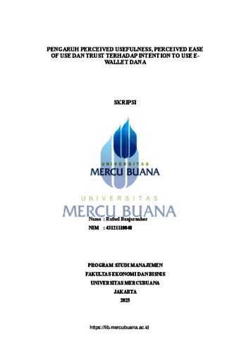 BANJARNAHOR, RAFAEL (2025) PENGARUH PERCEIVED USEFULNESS, PERCEIVED EASE OF USE DAN TRUST TERHADAP INTENTION TO USE E- WALLET DANA. S1 thesis, Universitas Mercu Buana Jakarta.
