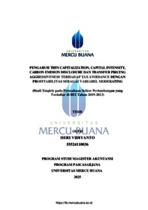 VIDIYANTO, HERI (2025) PENGARUH THIN CAPITALIZATION, CAPITAL INTENSITY, CARBON EMISION DISCLOSURE DAN TRANSFER PRICING AGGRESSIVENESS TERHADAP TAX AVOIDANCE DENGAN PROFITABILITAS SEBAGAI VARIABEL MODERATING (Studi Empiris pada Perusahaan Sektor Pertambangan yang Terdaftar di BEI Tahun 2019-2023). S2 thesis, Universitas Mercu Buana Jakarta.
