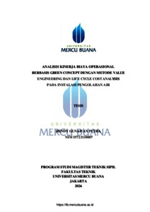 PUTRA, HENDY GUNAWAN (2026) ANALISIS KINERJA BIAYA OPERASIONAL BERBASIS GREEN CONCEPT DENGAN METODE VALUE ENGINEERING DAN LIFE CYCLE COST ANALYSIS PADA INSTALASI PENGOLAHAN AIR. S2 thesis, Universitas Mercu Buana Jakarta.