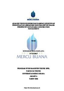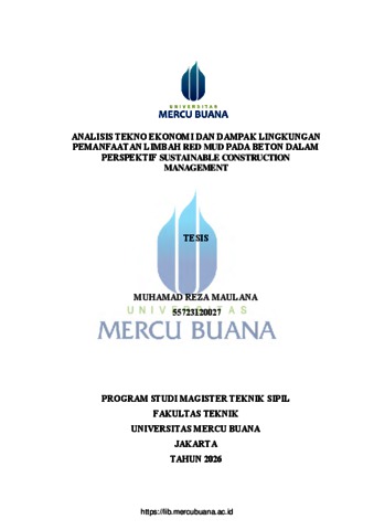 MAULANA, MUHAMAD REZA (2026) ANALISIS TEKNO EKONOMI DAN DAMPAK LINGKUNGAN PEMANFAATAN LIMBAH RED MUD PADA BETON DALAM PERSPEKTIF SUSTAINABLE CONSTRUCTION MANAGEMENT. S2 thesis, Universitas Mercu Buana Jakarta.