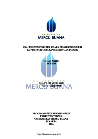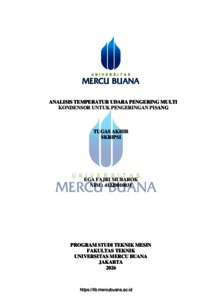 MUBAROK, EGA FAJRI (2026) ANALISIS TEMPERATUR UDARA PENGERING MULTI KONDENSOR UNTUK PENGERINGAN PISANG. S1 thesis, Universitas Mercu Buana Jakarta.