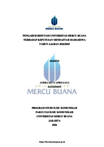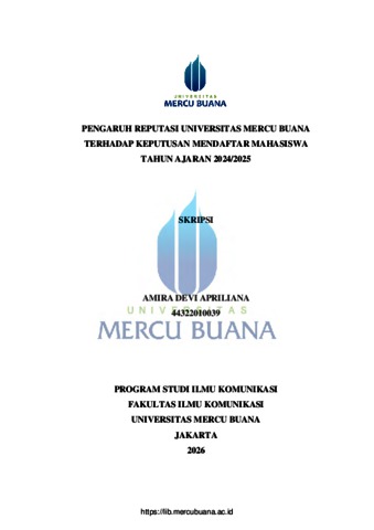 APRILIANA, AMIRA DEVI (2026) PENGARUH REPUTASI UNIVERSITAS MERCU BUANA TERHADAP KEPUTUSAN MENDAFTAR MAHASISWA TAHUN AJARAN 2024/2025. S1 thesis, Universitas Mercu Buana Jakarta.