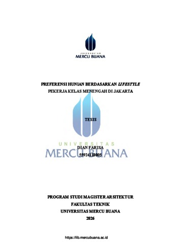 FARISA, DIAN (2026) PREFERENSI HUNIAN BERDASARKAN LIFESTYLE PEKERJA KELAS MENENGAH DI JAKARTA. S2 thesis, Universitas Mercu Buana Jakarta.