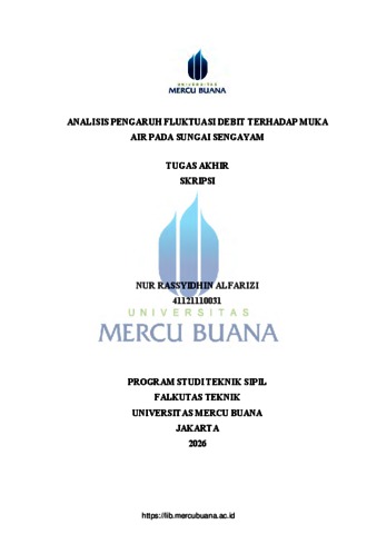 ALFARIZI, NUR RASSYIDHIN (2026) ANALISIS PENGARUH FLUKTUASI DEBIT TERHADAP MUKA AIR PADA SUNGAI SENGAYAM. S1 thesis, Universitas Mercu Buana Jakarta.