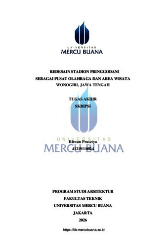 PRASETYO, RITWAN (2026) REDESAIN STADION PRINGGODANI SEBAGAI PUSAT OLAHRAGA DAN AREA WISATA WONOGIRI, JAWA TENGAH. S1 thesis, Universitas Mercu Buana Jakarta.