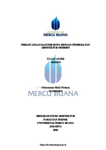 FIRDAUS, MUHAMMAR RISKI (2026) PERANCANGAN KANTOR SEWA DENGAN PENDEKATAN ARSITEKTUR MODERN. S1 thesis, Universitas Mercu Buana Jakarta.