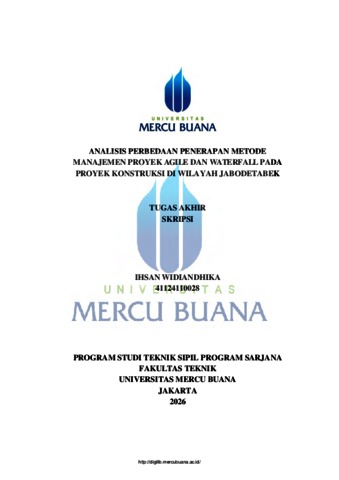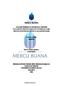 WIDIANDHIKA, IHSAN (2026) ANALISIS PERBEDAAN PENERAPAN METODE MANAJEMEN PROYEK AGILE DAN WATERFALL PADA PROYEK KONSTRUKSI DI WILAYAH JABODETABEK. S1 thesis, UNIVERISTAS MERCU BUANA - BUNCIT.