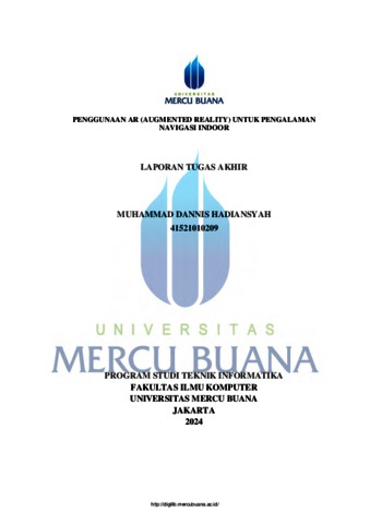 HADIANSYAH, MUHAMMAD DANNIS (2025) PENGGUNAAN AR (AUGMENTED REALITY) UNTUK PENGALAMAN NAVIGASI INDOOR. S1 thesis, UNIVERISTAS MERCU BUANA - BUNCIT.