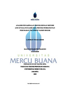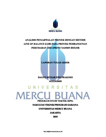 PRAKOSO, BAGUS SEYSAR DWI (2025) ANALISIS PENJADWALAN PROYEK DENGAN METODE LINE OF BALANCE (LOB) PADA PROYEK PEMBANGUNAN PERUMAHAN THE SPRING YASMIN BOGOR. S1 thesis, UNIVERISTAS MERCU BUANA - BUNCIT.