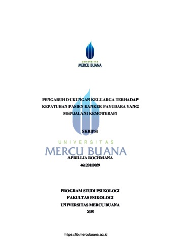 ROCHMANA, APRILLIA (2026) PENGARUH DUKUNGAN KELUARGA TERHADAP KEPATUHAN PASIEN KANKER PAYUDARA YANG MENJALANI KEMOTERAPI. S1 thesis, Universitas Mercu Buana Jakarta.
