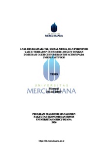 MARZUKI, MARZUKI (2026) ANALISIS DAMPAK CSR, SOCIAL MEDIA, DAN PERCEIVED VALUE TERHADAP CUSTOMER LOYALTY DENGAN DIMEDIASI OLEH CUSTOMER SATISFACTION PADA UMKM FAST FOOD. S2 thesis, Universitas Mercu Buana Jakarta.