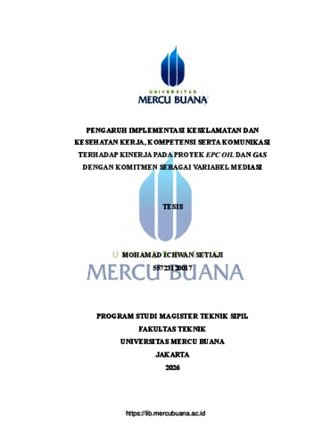 SETIAJI, MOHAMAD ICHWAN (2026) PENGARUH IMPLEMENTASI KESELAMATAN DAN KESEHATAN KERJA, KOMPETENSI SERTA KOMUNIKASI TERHADAP KINERJA PADA PROYEK EPC OIL DAN GAS DENGAN KOMITMEN SEBAGAI VARIABEL MEDIASI. S2 thesis, Universitas Mercu Buana Jakarta.