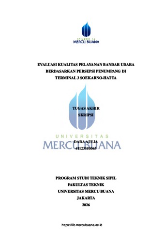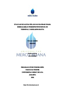 AULIA, DARA (2026) EVALUASI KUALITAS PELAYANAN BANDAR UDARA BERDASARKAN PERSEPSI PENUMPANG DI TERMINAL 3 SOEKARNO-HATTA. S1 thesis, Universitas Mercu Buana Jakarta.