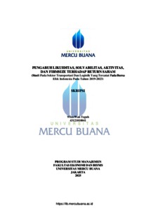 TEGUH, WIRA WAN (2025) PENGARUH LIKUIDITAS, SOLVABILITAS, AKTIVITAS, DAN FIRMSIZE TERHADAP RETURN SAHAM (Studi Pada Sektor Transportasi Dan Logistik Yang Tercatat Pada Bursa Efek Indonesia Pada Tahun 2019-2023). S1 thesis, Universitas Mercu Buana Jakarta.