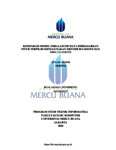 SEMBIRING, RIAS AKMAL (2026) KOMPARASI MODEL IMBALANCED DATA BERDASARKAN FITUR TERPILIH MENGGUNAKAN METODE RN-SMOTE DAN DBSCAN-SMOTE. S1 thesis, Universitas Mercu Buana Jakarta.