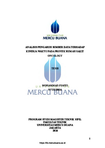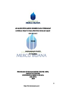 SYAFEI, MOHAMMAD (2026) ANALISIS PENGARUH SUMBER DAYA TERHADAP KINERJA WAKTU PADA PROYEK RUMAH SAKIT ONCOLOGY. S2 thesis, Universitas Mercu Buana Jakarta.