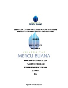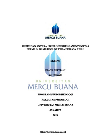SEPTIANI, DIANA (2026) HUBUNGAN ANTARA LONELINESS DENGAN INTENSITAS BERMAIN GAME ROBLOX PADA DEWASA AWAL. S1 thesis, Universitas Mercu Buana Jakarta.