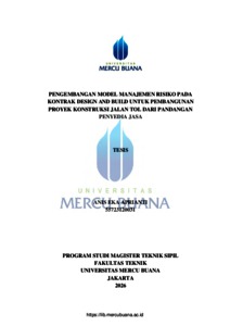 APRIANTI, ANIS EKA (2026) PENGEMBANGAN MODEL MANAJEMEN RISIKO PADA KONTRAK DESIGN AND BUILD UNTUK PEMBANGUNAN PROYEK KONSTRUKSI JALAN TOL DARI PANDANGAN PENYEDIA JASA. S2 thesis, Universitas Mercu Buana Jakarta.