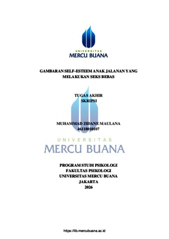 MAULANA, MUHAMMAD ZIDANE (2025) GAMBARAN SELF-ESTEEM ANAK JALANAN YANG MELAKUKAN SEKS BEBAS. S1 thesis, Universitas Mercu Buana Jakarta.