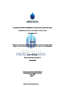 Gunawan, Rico Saputra (2015) ANALISIS FRAMING PEMBERITAAN KLUB LIGA SPANYOL REAL MADRID PADA SITUS OLAHRAGA GOAL.COM ( PERIODE 2015 ). S1 thesis, Universitas Mercu Buana.
