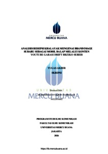 FADHILLAH, MUHAMMAD SYUKRON (2026) ANALISIS RESEPSI KHALAYAK MENGENAI BRAND IMAGE SUBARU SEBAGAI MOBIL BALAP MELALUI KONTEN YOUTUBE GARASI DRIFT BRZIKO SERIES. S1 thesis, Universitas Mercu Buana Jakarta.