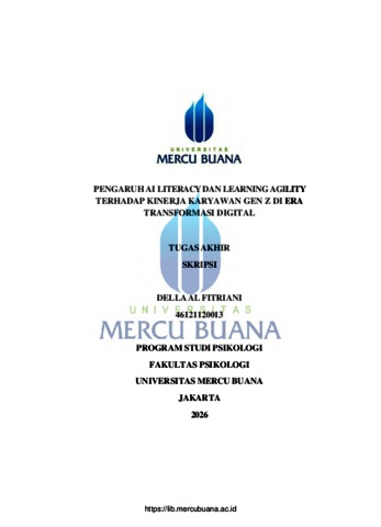 FITRIANI, DELLA AL (2026) PENGARUH AI LITERACY DAN LEARNING AGILITY TERHADAP KINERJA KARYAWAN GEN Z DI ERA TRANSFORMASI DIGITAL. S1 thesis, Universitas Mercu Buana Jakarta.