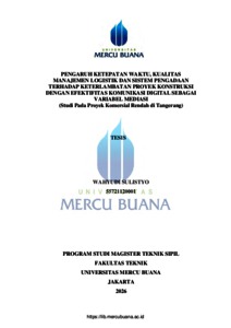SULISTYO, WAHYUDI (2026) PENGARUH KETEPATAN WAKTU, KUALITAS MANAJEMEN LOGISTIK DAN SISTEM PENGADAAN TERHADAP KETERLAMBATAN PROYEK KONSTRUKSI DENGAN EFEKTIFITAS KOMUNIKASI DIGITAL SEBAGAI VARIABEL MEDIASI (Studi Pada Proyek Komersial Rendah di Tangerang). S2 thesis, Universitas Mercu Buana Jakarta.