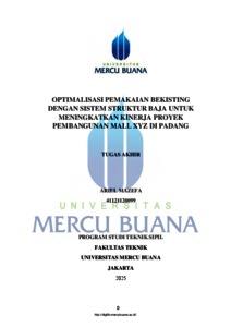 MAZEFA, ARIEL (2026) OPTIMALISASI PEMAKAIAN BEKISTING DENGAN SISTEM STRUKTUR BAJA UNTUK MENINGKATKAN KINERJA PROYEK PEMBANGUNAN MALL XYZ DI PADANG. S1 thesis, UNIVERISTAS MERCU BUANA - BUNCIT.