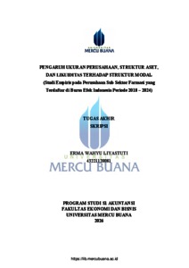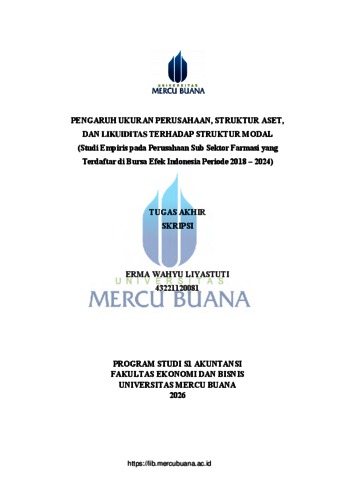 LIYASTUTI, ERMA WAHYU (2026) PENGARUH UKURAN PERUSAHAAN, STRUKTUR ASET, DAN LIKUIDITAS TERHADAP STRUKTUR MODAL (Studi Empiris pada Perusahaan Sub Sektor Farmasi yang Terdaftar di Bursa Efek Indonesia Periode 2018 - 2024). S1 thesis, Universitas Mercu Buana Jakarta.