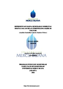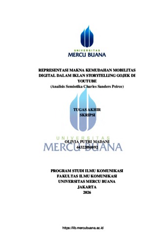 MADANI, OLIVIA PUTRI (2026) REPRESENTASI MAKNA KEMUDAHAN MOBILITAS DIGITAL DALAM IKLAN STORYTELLING GOJEK DI YOUTUBE (Analisis Semiotika Charles Sanders Peirce). S1 thesis, Universitas Mercu Buana Jakarta.