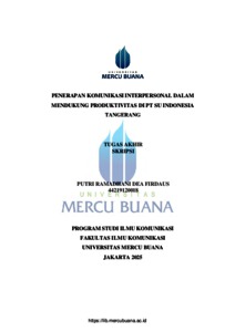 FIRDAUS, PUTRI RAMADHANI DHEA (2025) PENERAPAN KOMUNIKASI INTERPERSONAL DALAM MENDUKUNG PRODUKTIVITAS DI PT SU INDONESIA TANGERANG. S1 thesis, Universitas Mercu Buana Jakarta.