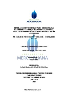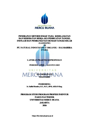 ERMAWATI, ELI (2026) PENERAPAN METODE DMAIC PADA KESELAMATAN DAN KESEHATAN KERJA (K3) PEMBUATAN TANGKI, INSTLASI DAN PEMBANGUNAN RUMAH TANGKI SOLAR (GASOLINE) DI PT. NATURAL INDOCOCONUT ORGANIK - HALMAHERA UTARA. S1 thesis, Universitas Mercu Buana Jakarta.